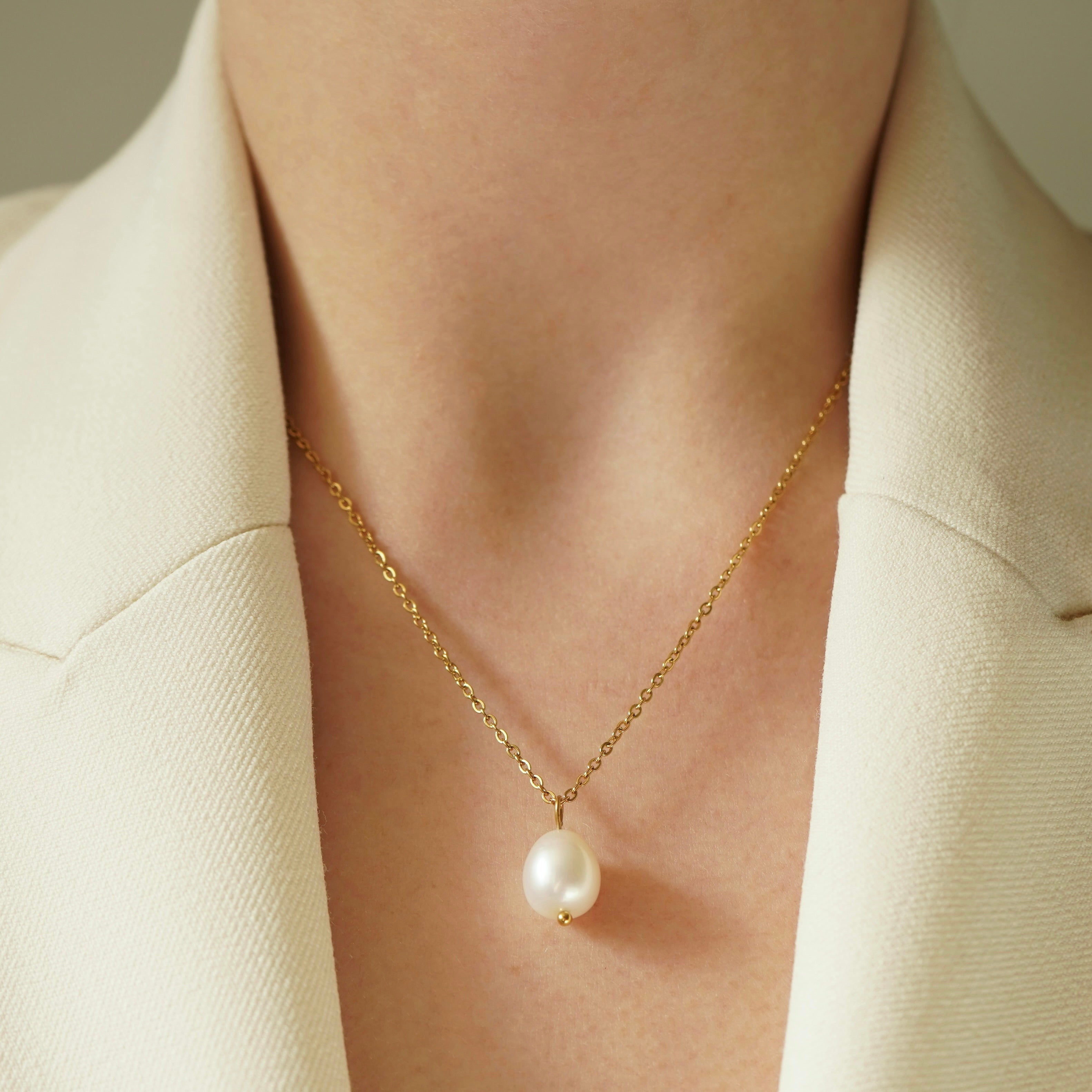 Elevate your jewellery collection with this delicate and timeless freshwater pearl pendant necklace. Crafted with AAA grade freshwater pearls, each pendant showcases a natural, organic shape, making every piece unique. The chain is made from high quality stainless steel with 18K gold PVD plating, ensuring durability, a luxurious finish, and resistance to tarnishing.