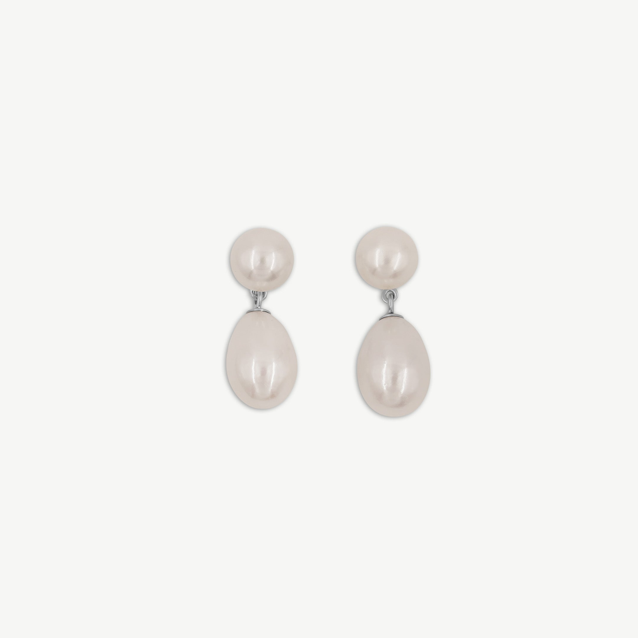 Rice button Freshwater Pearl Earrings - Silver